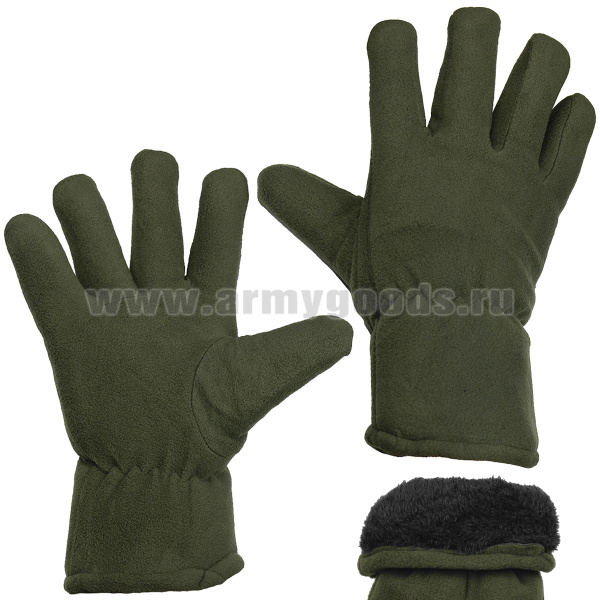 Перчатки зимние флисовые с иск. мехом оливковые