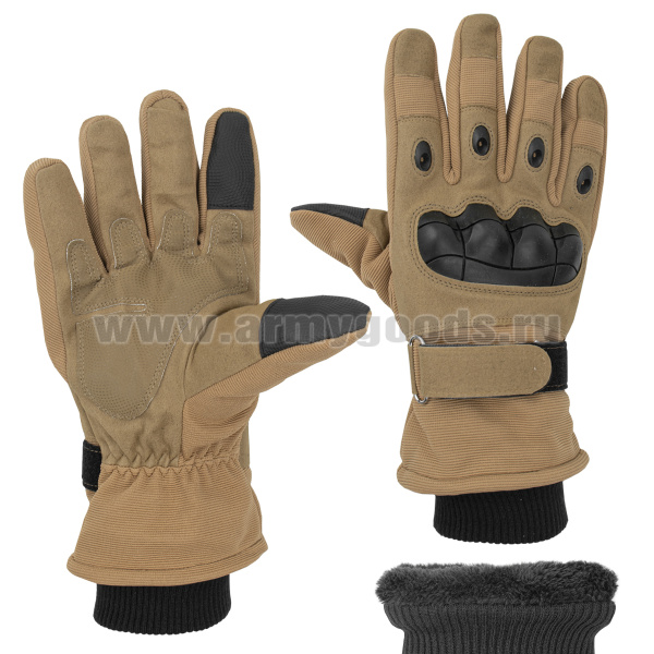 Перчатки тканевые с защитными накладками (утепленные иск. мехом) песочные
