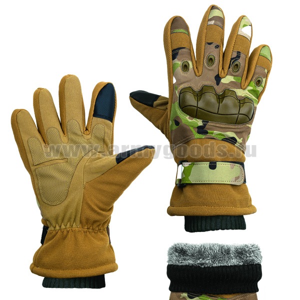 Перчатки тактические комбинированные (ткань + экокожа) с накладками из термопластичной резины "мультикам"