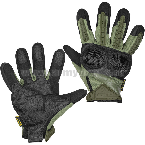 Перчатки тактические комбинированные (ткань + экокожа) с накладками из термопластичной резины оливковые