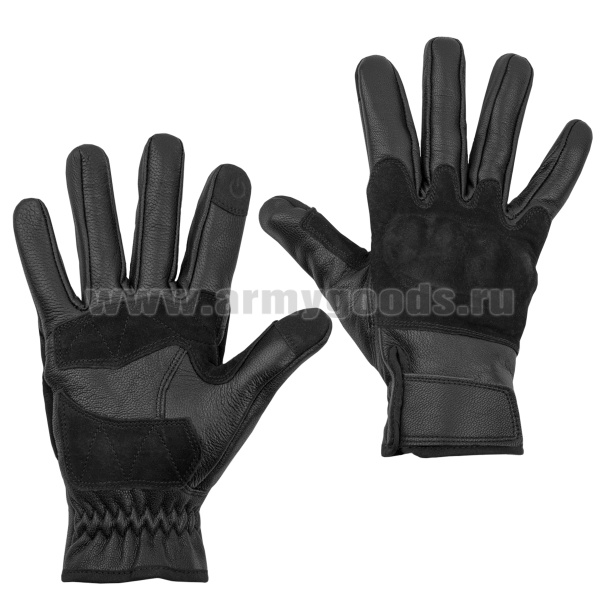 Перчатки тактические комбинированные (кожа + замша) с накладками из термопластичной резины черные