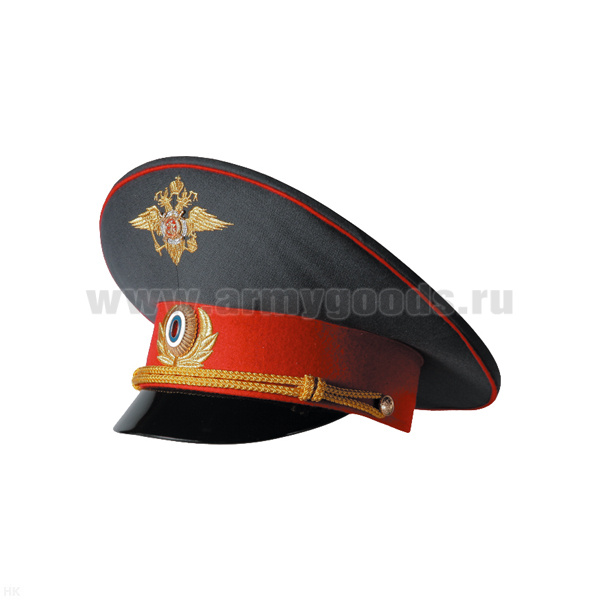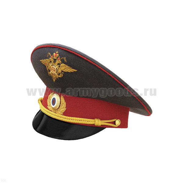 Фуражка Ручная вышивка канитель (3% золото) Полиция ген. темно-синяя с красн. кантом