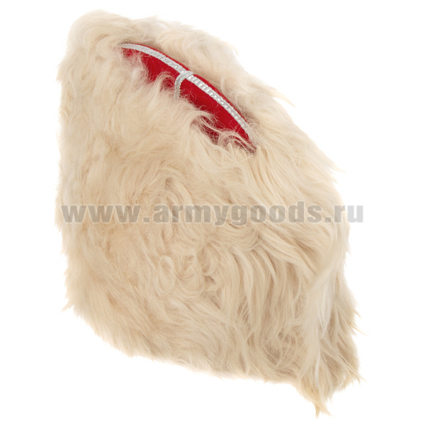 Папаха казачья нат.мех белая (верх - алое сукно) универсальный размер