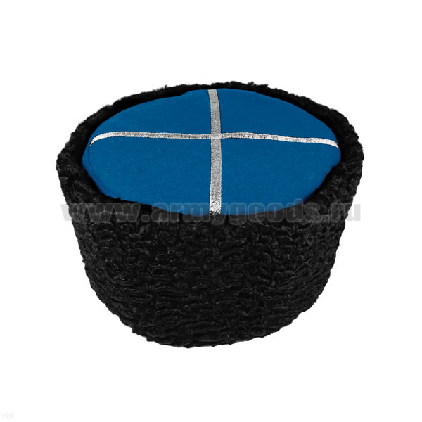 Папаха казачья нат.мех черная (верх - васильковое сукно) универсальный размер