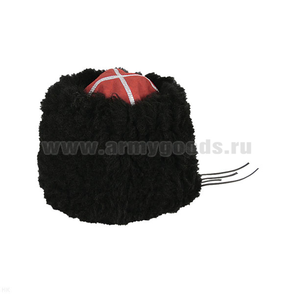 Папаха казачья нат.мех черная (верх - алое сукно) универсальный размер