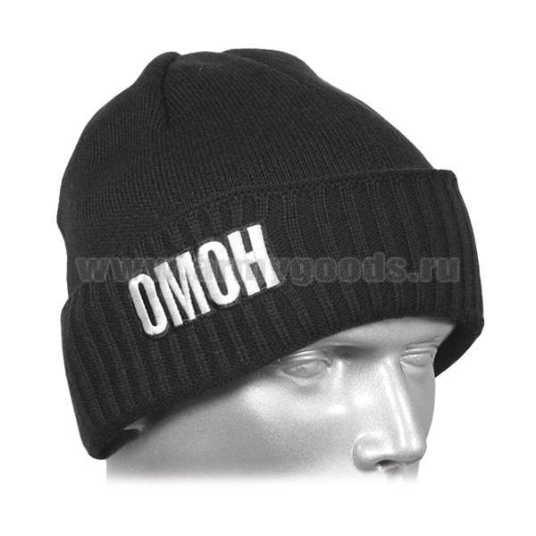 Шапка вязаная двойная п/ш черная с вышивкой ОМОН