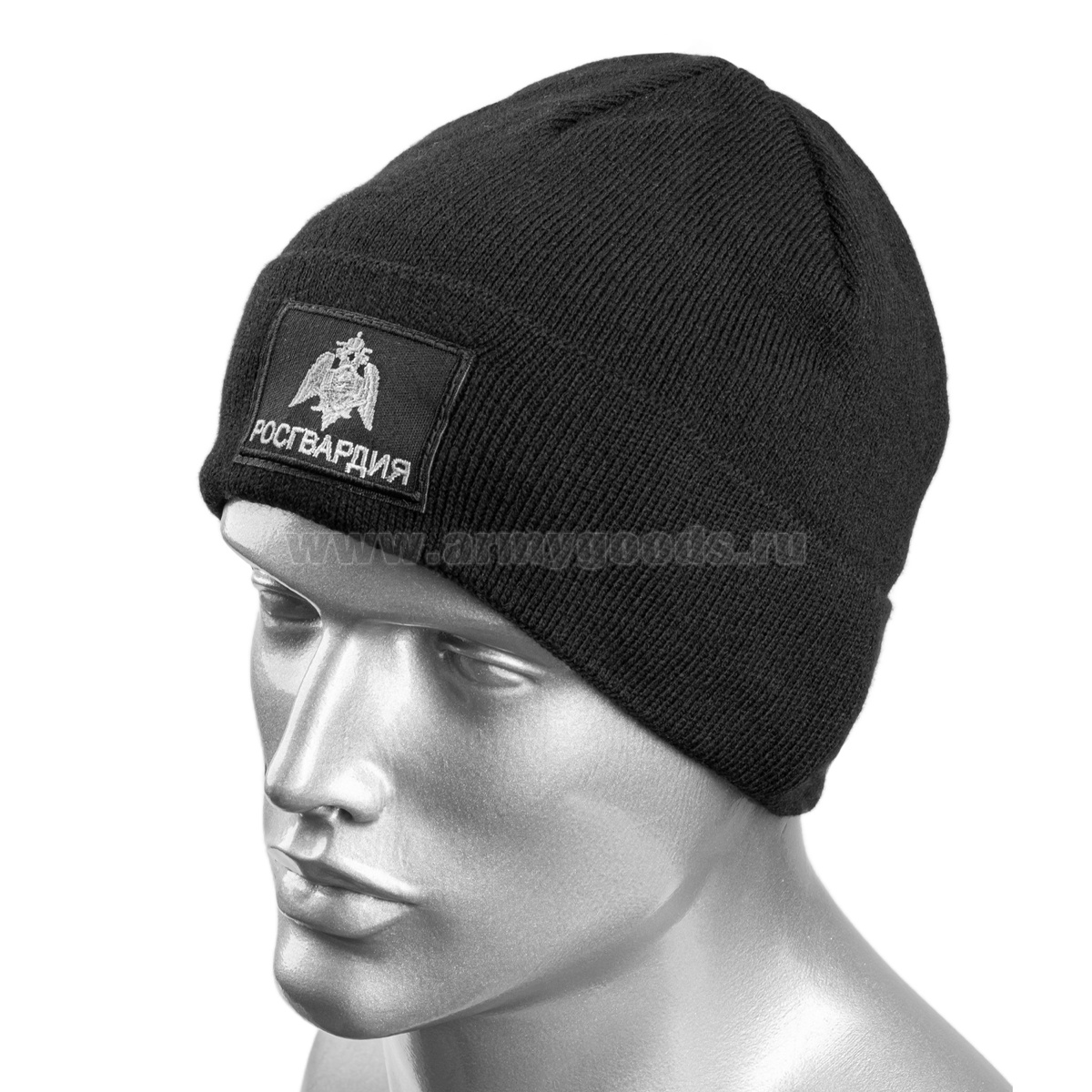 Шапка вязаная п/ш с флисовой подкладкой черная с вышит. шевроном Росгвардия (орел РГ)