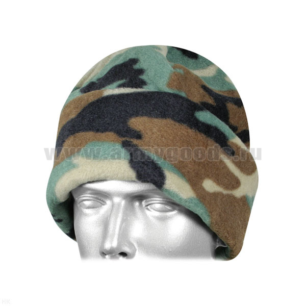 Шапка флисовая двухслойная с отворотом кмф зеленая