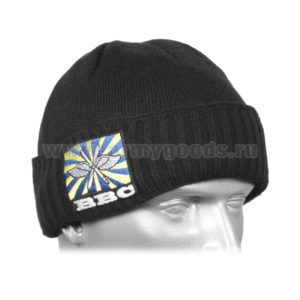 Шапка вязаная двойная п/ш черная с вышивкой ВВС (флаг ВВС РФ)