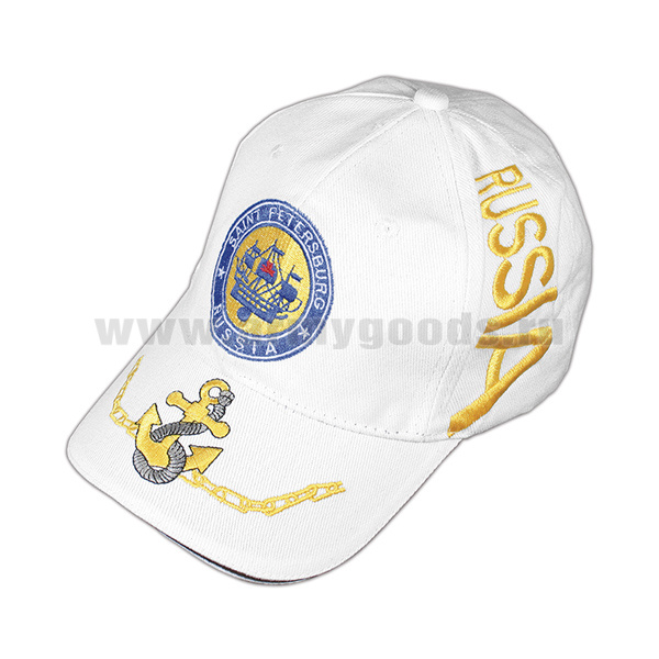 -Бейсболка супервышивка Saint Petersburg (на козырьке якорь) белая
