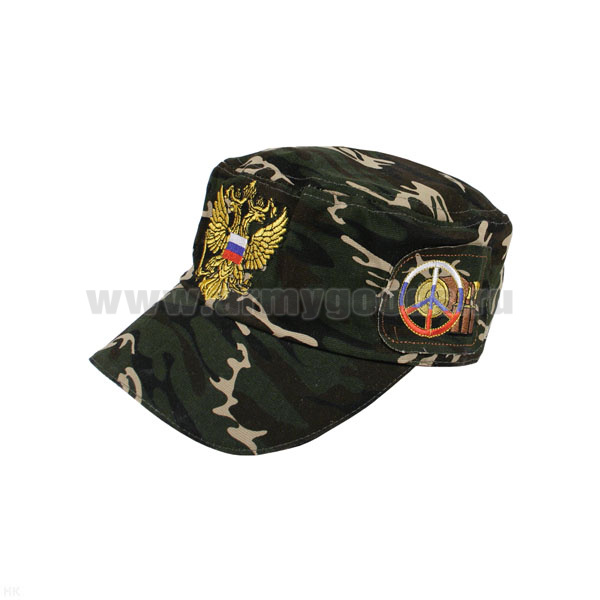 Бейсболка кмф зеленая вышитая Орел РФ (флаг + знак пацифик)