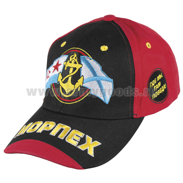 Бейсболка вышитая Морпех Где мы, там победа! (черно-красная)