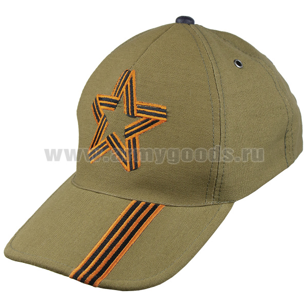 Бейсболка хаки вышитая Звезда + лента на козырьке (гвардейск. вышивка)