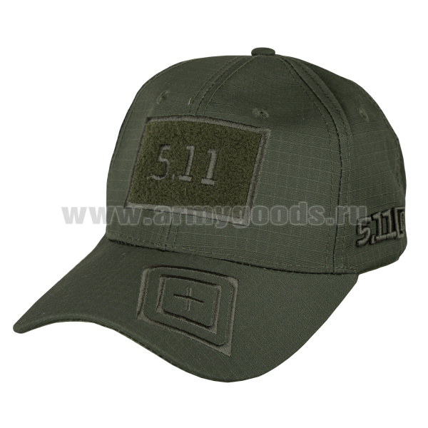 Бейсболка вышитая 5.11 (оливковая) ткань "rip-stop" с 1 нашитой липучкой
