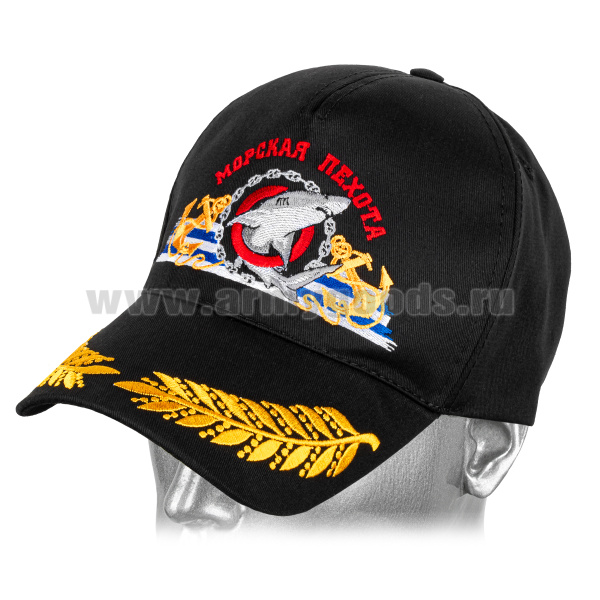 Бейсболка черная вышитая Морская пехота (акула, якоря и Андреевский флаг)
