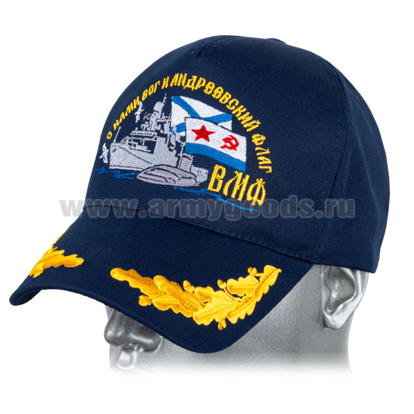 Бейсболка темно-синяя вышитая ВМФ (С нами Бог и Андреевский флаг) корабль и ПЛ