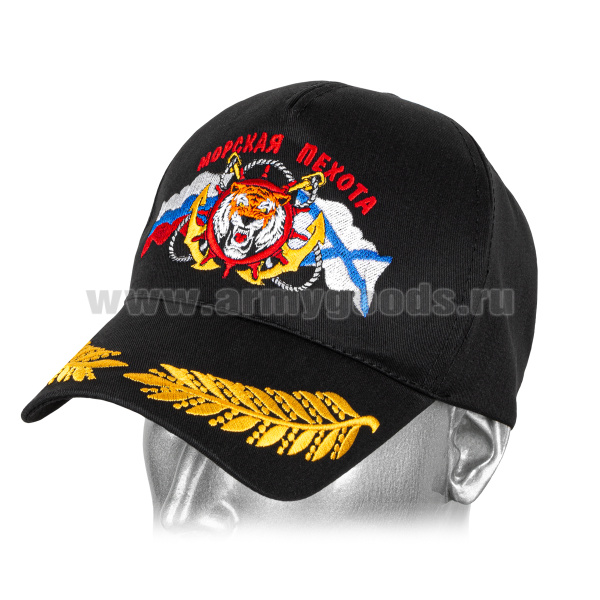 Бейсболка черная вышитая Морская пехота (тигр, флаги РФ и Андреевский)