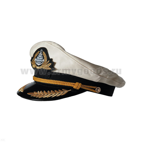 Фуражка сувенирная капитанка белая с вышитой кокардой: два якоря/якорь в венке (эмбл. по наличию на складе)