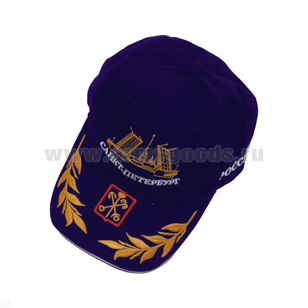 -Бейсболка супервышивка Санкт-Петербург (на козырьке герб города) темно-синяя