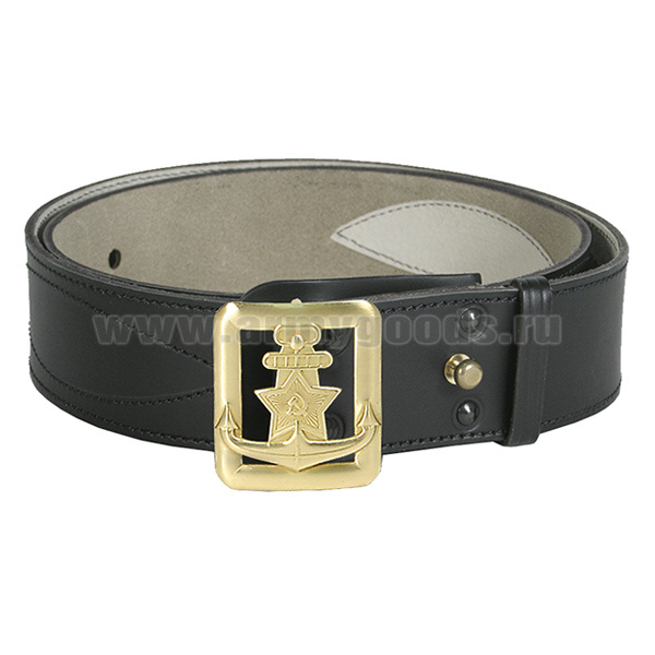Ремень генеральский кожаный черный со штампованной пряжкой ВМФ СССР
