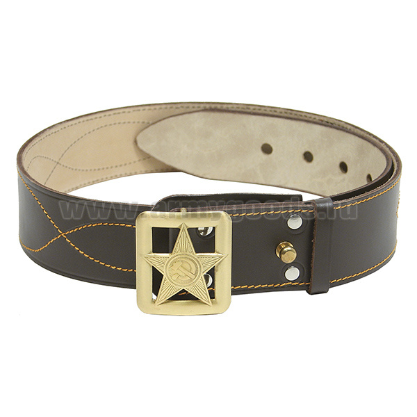 Ремень генеральский кожаный коричневый со штампованной пряжкой Звезда СА (с лучами)