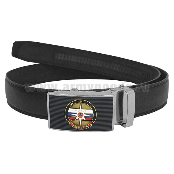 Ремень брючный кожаный черный с цветной бляхой МЧС