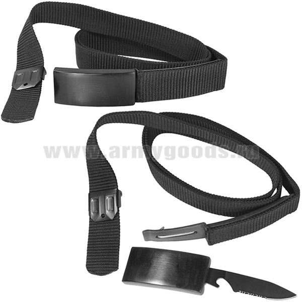 Ремень брючный тесьма (ширина 30 мм) с потайным ножом в пряжке (черный)