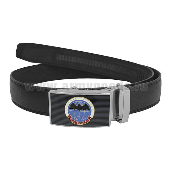 Ремень брючный кожаный черный с цветной бляхой Военная разведка (лет. мышь)