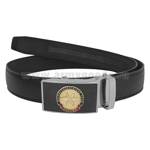 Ремень брючный кожаный черный с цветной бляхой Военно-космические силы