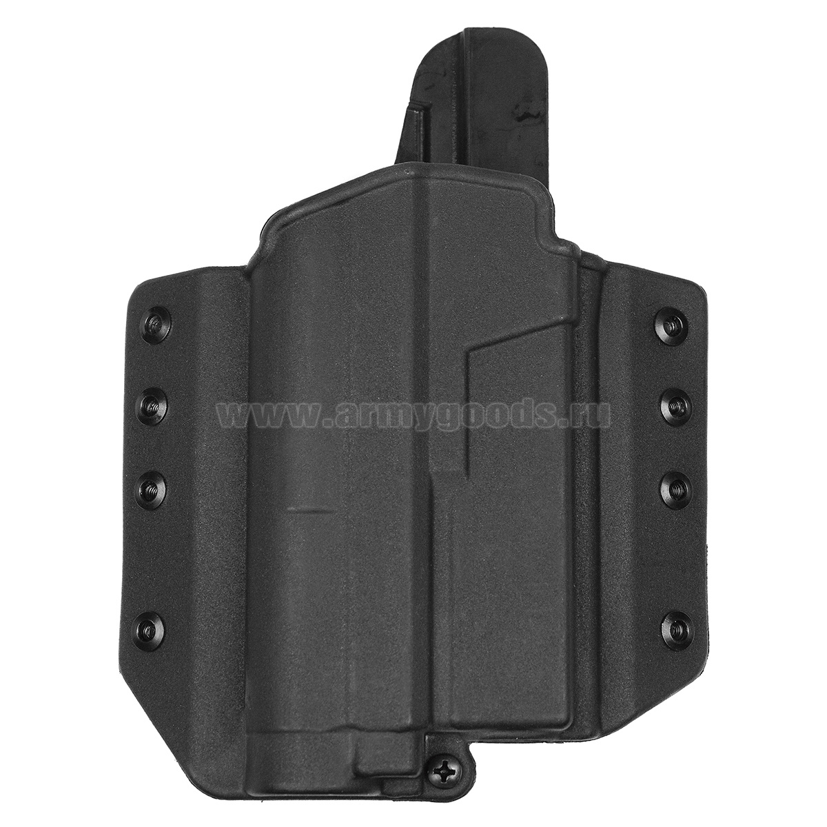 Кобура поясная под пистолет Глок с отделением под фонарик (ударопрочный полиамид) черная