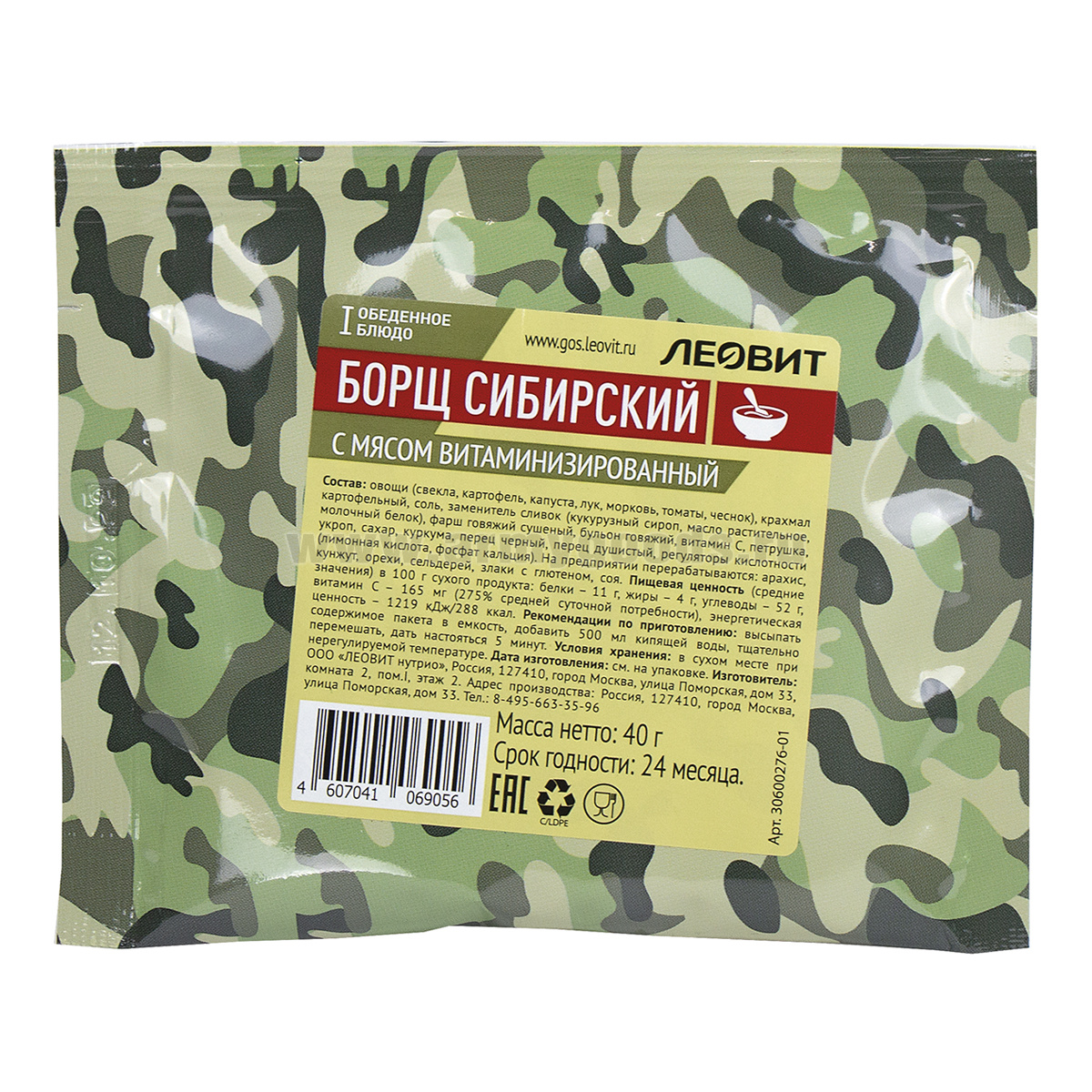 Концентрат пищевой Борщ сибирский с мясом витаминизированный (40 г) до 07.2025 и ранее