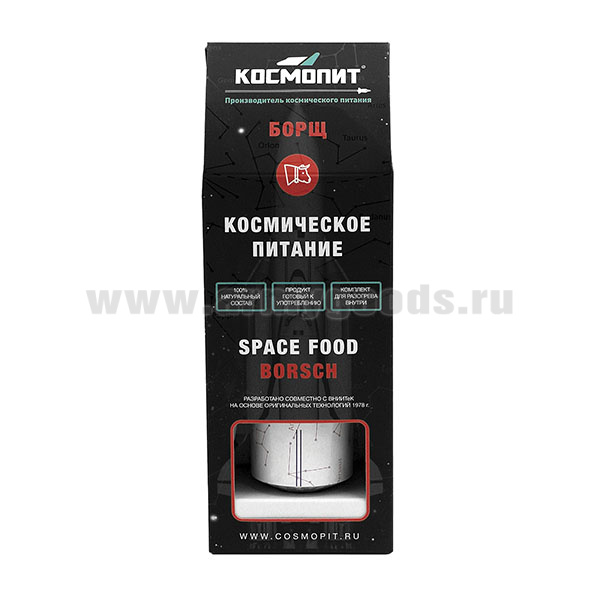 • Космическое питание Борщ (масса нетто 165 г) в комплекте с беспламенным подогревателем до 07.2025 и ранее