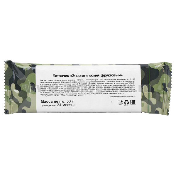 Батончик энергетический Апельсиновый (50 г) до 05.2026 и ранее