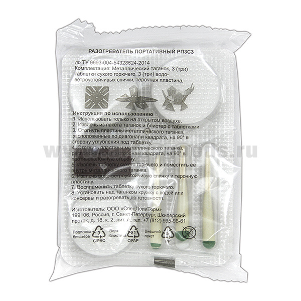 Разогреватель портативный РПЗСЗ (мет. таганок, сухое горючее (з табл), спички, терочная пластина)