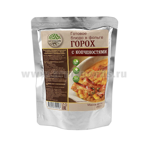 Консервы обеденные Горох с копченостями (250 г) (готовое блюдо в фольге)