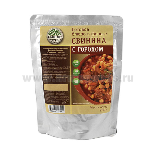 Консервы обеденные Свинина с горохом (250 г) (готовое блюдо в фольге)