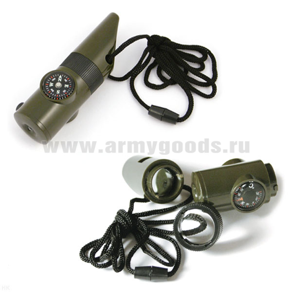 Свисток пластмассовый многофункциональный (компас, зеркало, лупа, термометр, фонарик) на шнурке