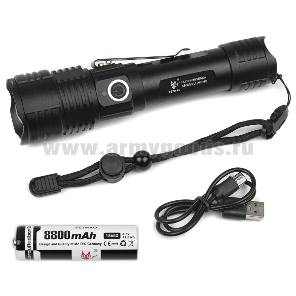 Фонарь светодиодный карманный в алюминиевом корпусе с зумом (зарядка от USB) FA-L11-4-P50