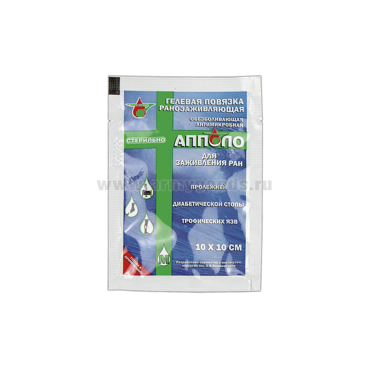 Повязка гелевая "АППОЛО" ранозаживляющая обезболивающая антимикробная (10х10 см)