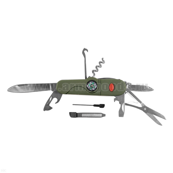 Нож универсальный (10 инструментов) с компасом, фонариком и зеркалом
