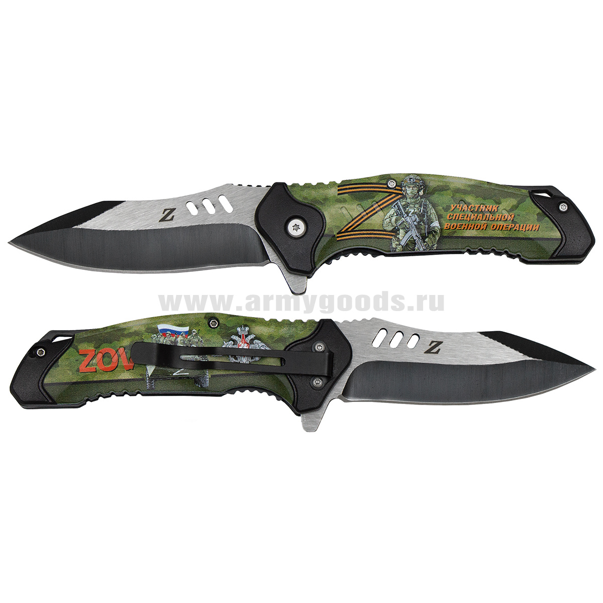 Нож раскладной Участник СВО (кмф зеленый) общая длина 21 см