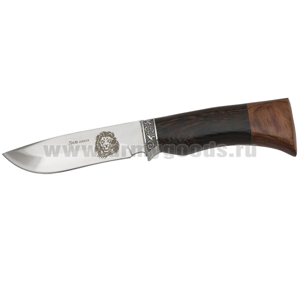 Нож Лев (рукоятка - дерево, клинок - полировка) с гравировкой (надпись+ рисунок) 23 см