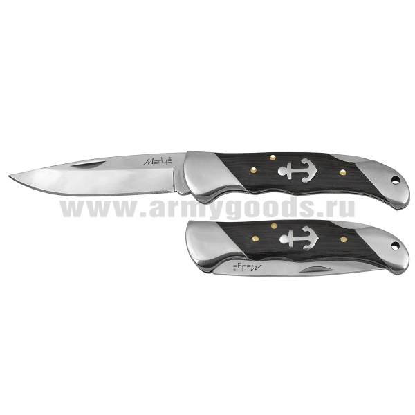 Нож раскладной (стальной, рукоятка дерево (с якорем) общая длина 19,5 см