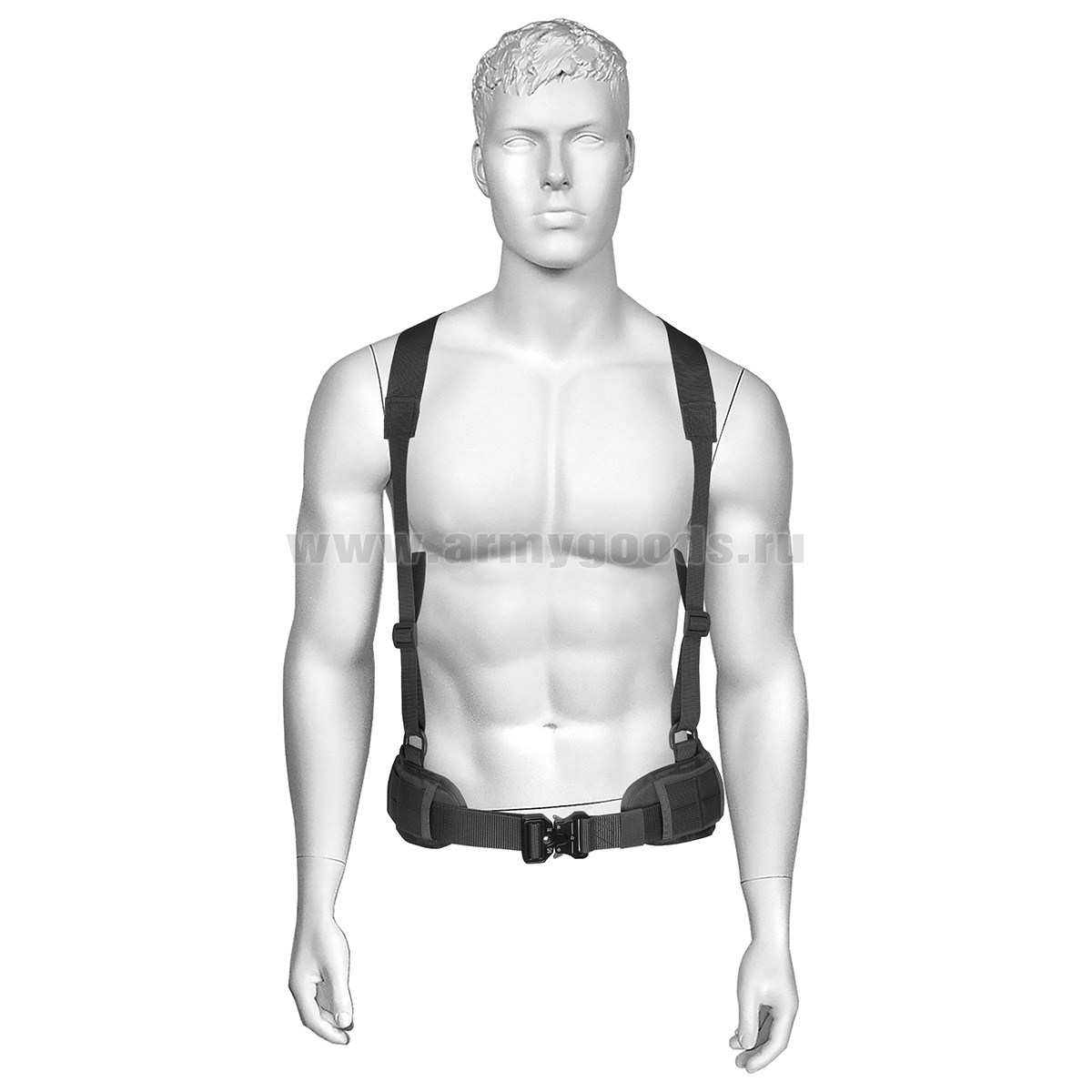 Пояс тактический малый с лямками и мет. пряжкой-"коброй" черный
