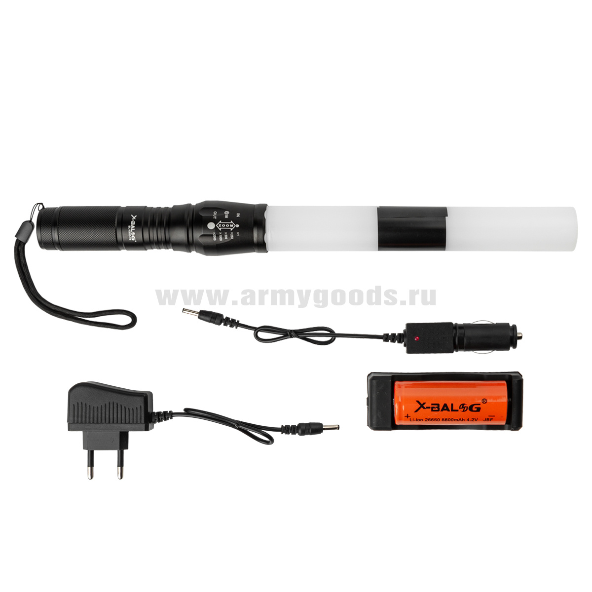 Жезл полосатый (стробоскоп) с мет. ручкой (длина 36 см) + ZOOM (в комплекте с аккумулятором и подзарядкой 2 вида) кнопка с торца ручки
