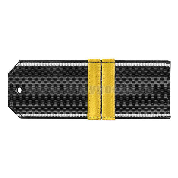 Погоны черн. белый кант с нашитым желт.шелковым галуном (мл. сержант) на пластике