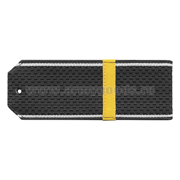 Погоны черн. белый кант с нашитым желт.шелковым галуном (мл. сержант) на пластике