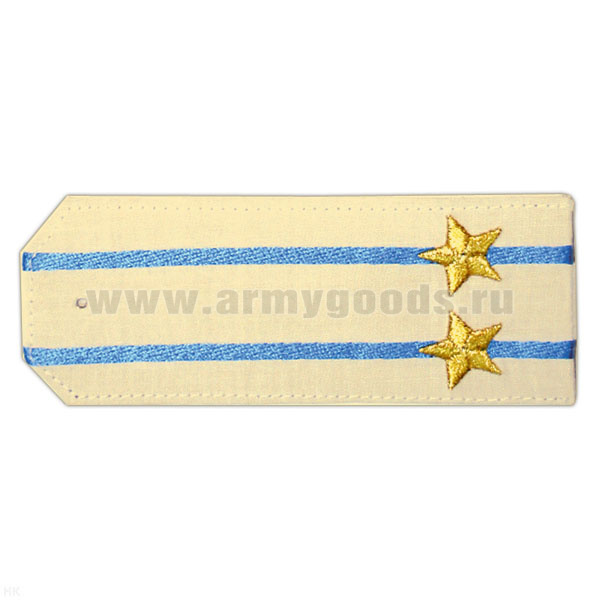 Погоны «машинная вышивка» из рубаш. ткани крем. с 2 вышит. голуб. просв. с вышит. звездами (подполковник)