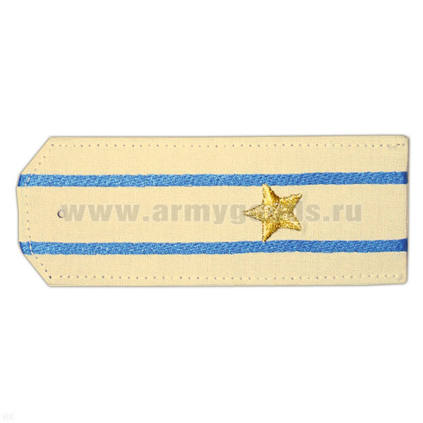 Погоны «машинная вышивка» из рубаш. ткани крем. с 2 вышит. голуб. просв. с вышитой звездой (майор)