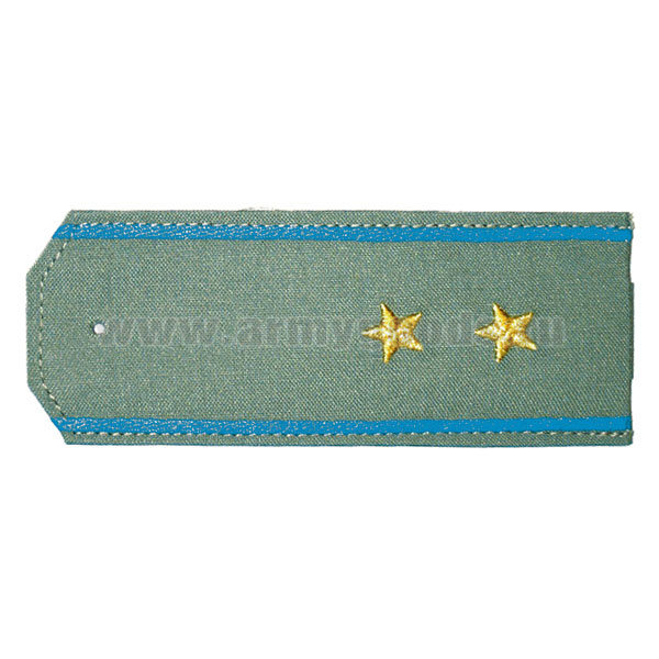 Погоны «машинная вышивка» из рубаш. ткани оливк. с вышит. голуб. кантом с вышит. звездами (прапорщик)